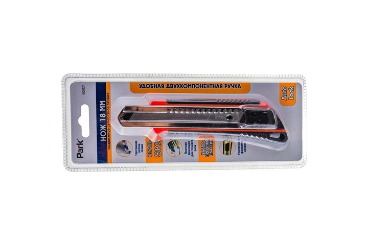 Нож строительный Park 18CUT27 лезвие 18 мм с металлической направляющей и 2-х компонентной ручкой