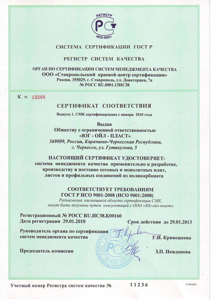 Сертификат системы менеджмента качества