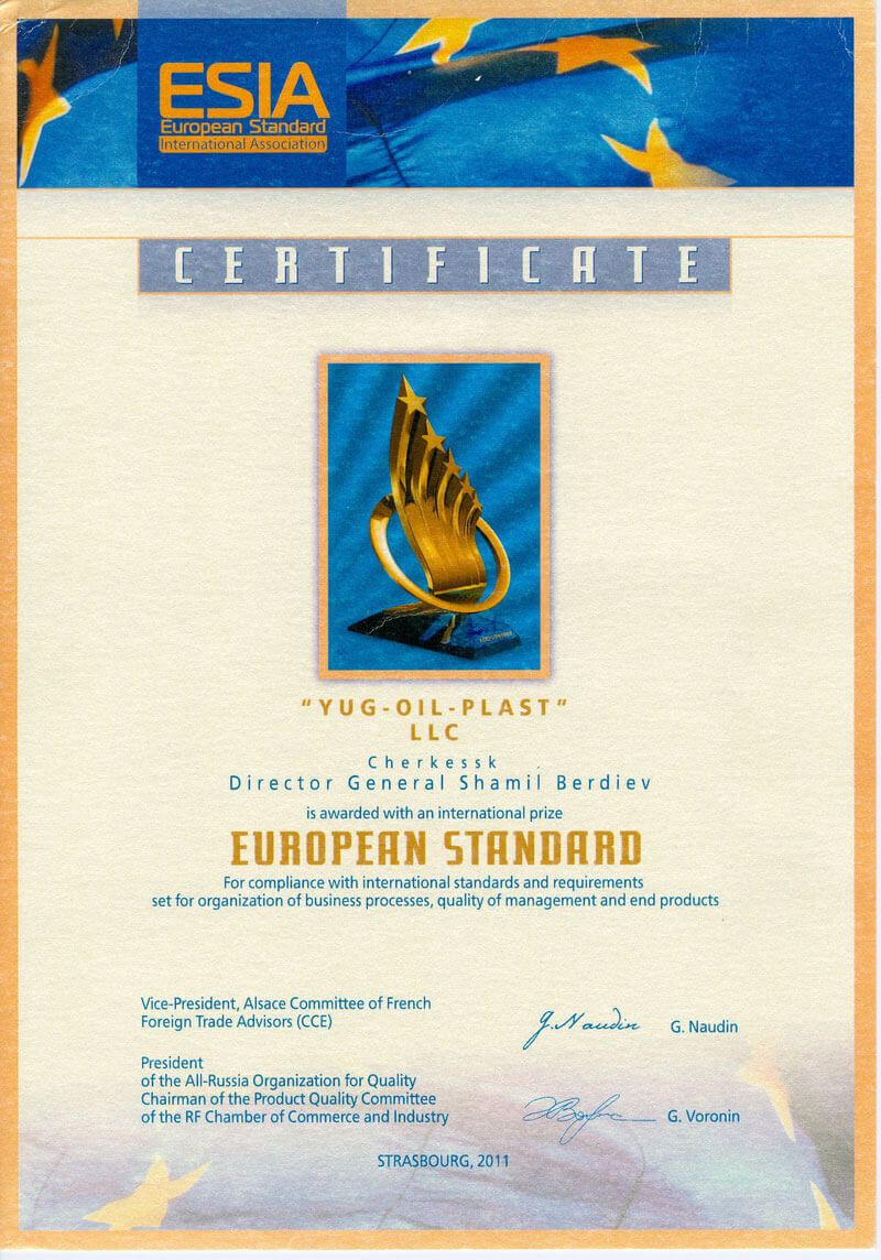 Сертификат европейского стандарта качества