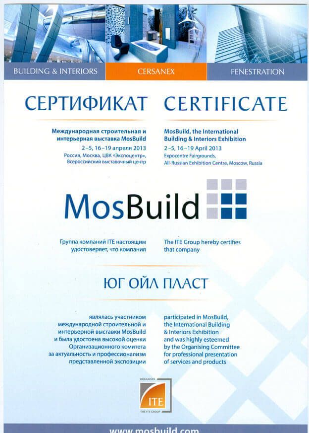 Сертификат участника выставки MosBuild